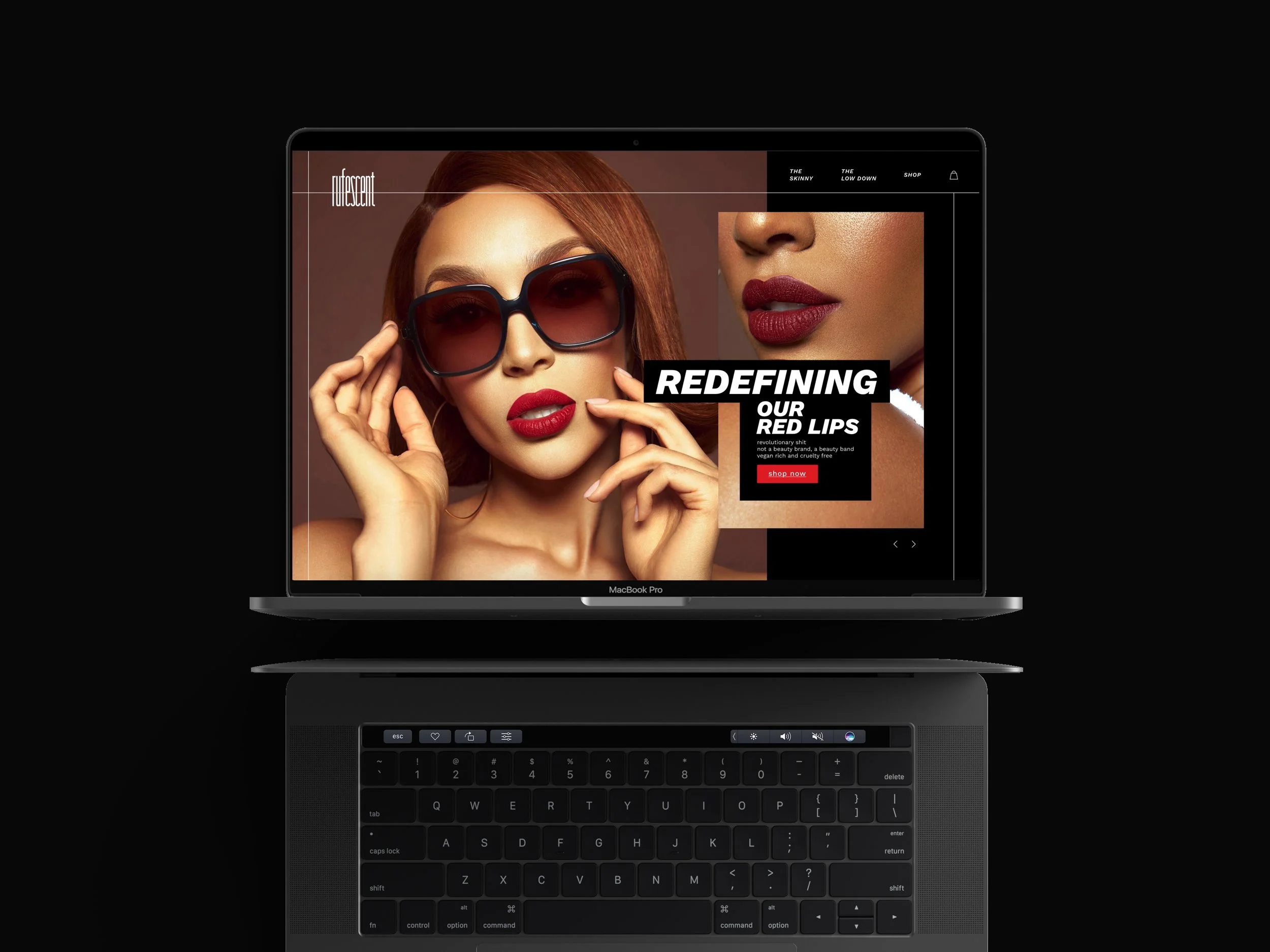 Fearless Packaging Design. Defined by the red color palette, custom emboss details on the logo, incorporating the different shade names of each lipsticks on the outer box packaging with bold and striking fonts.