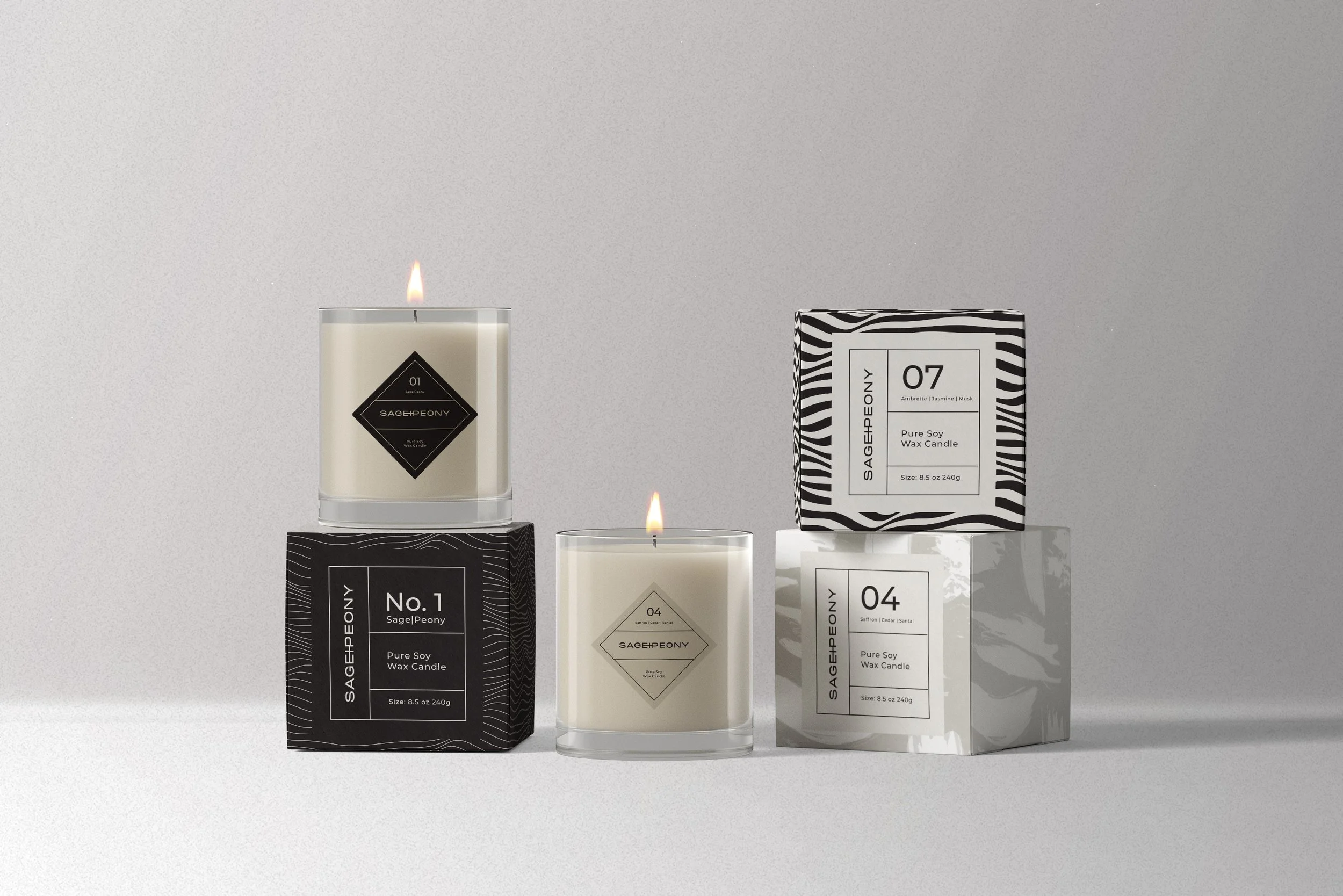 Is a brand offering handmade soy candles in small batches in Georgia, using eco-friendly materials and sustainable practices. Complete Packaging design was Creeighted for the range of candles with minimal design, look and feel.